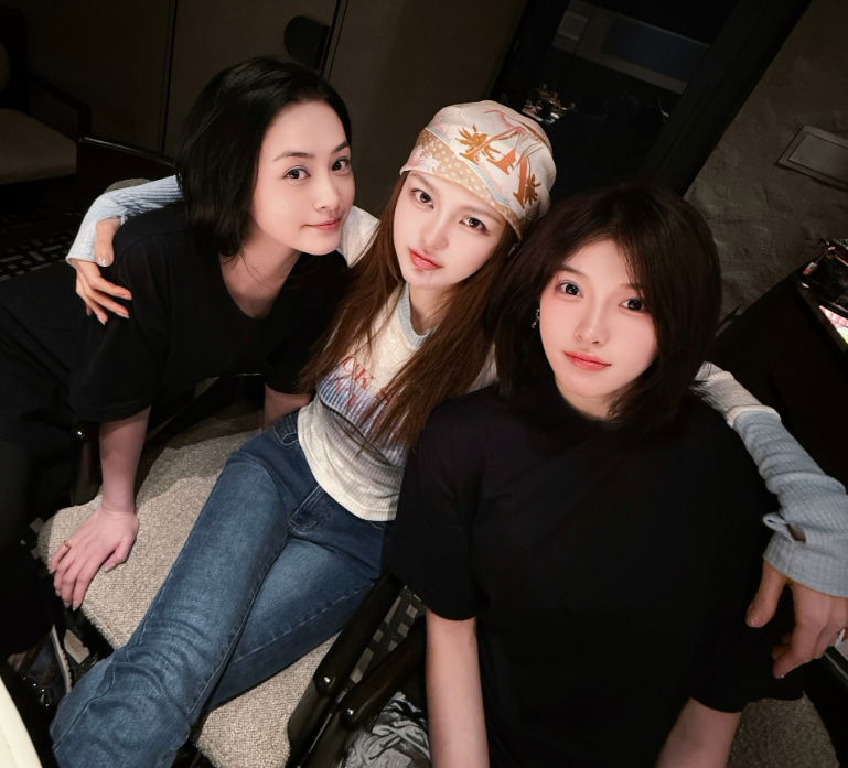 周扬青晒出三人自拍,直言:“我们身处不同的领域,但都在各自的领域发着光,冲吧女孩们。”满满励志的宣言。
